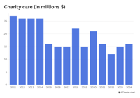 It is important to note that ChristianaCare and other hospitals do spend much more on their community benefits than solely charity care. However, as that total dollar amount for community benefits rises year over year, charity care has remained relatively flat.